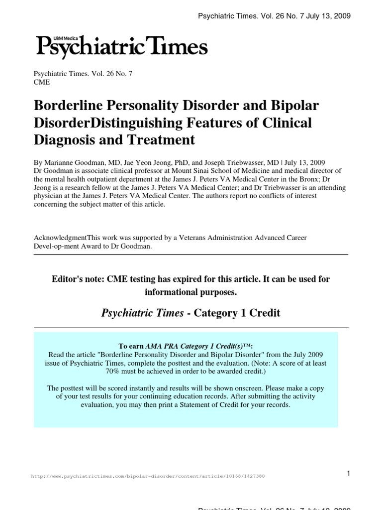 Borderline Personality Disorder Vs Bipolar : Bipolar Disorder Vs Borderline Personality Disorder / Outpatient psychotherapy for borderline personality disorder: